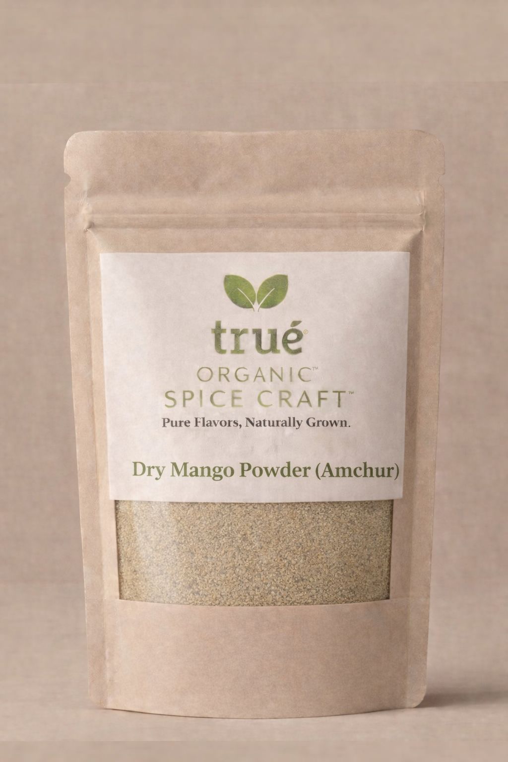 True Organic Dry Mango Powder (Amchur) delivers a tangy, fruity flavor made from naturally dried raw mangoes. Enhances curries, chaats, marinades, and snacks.